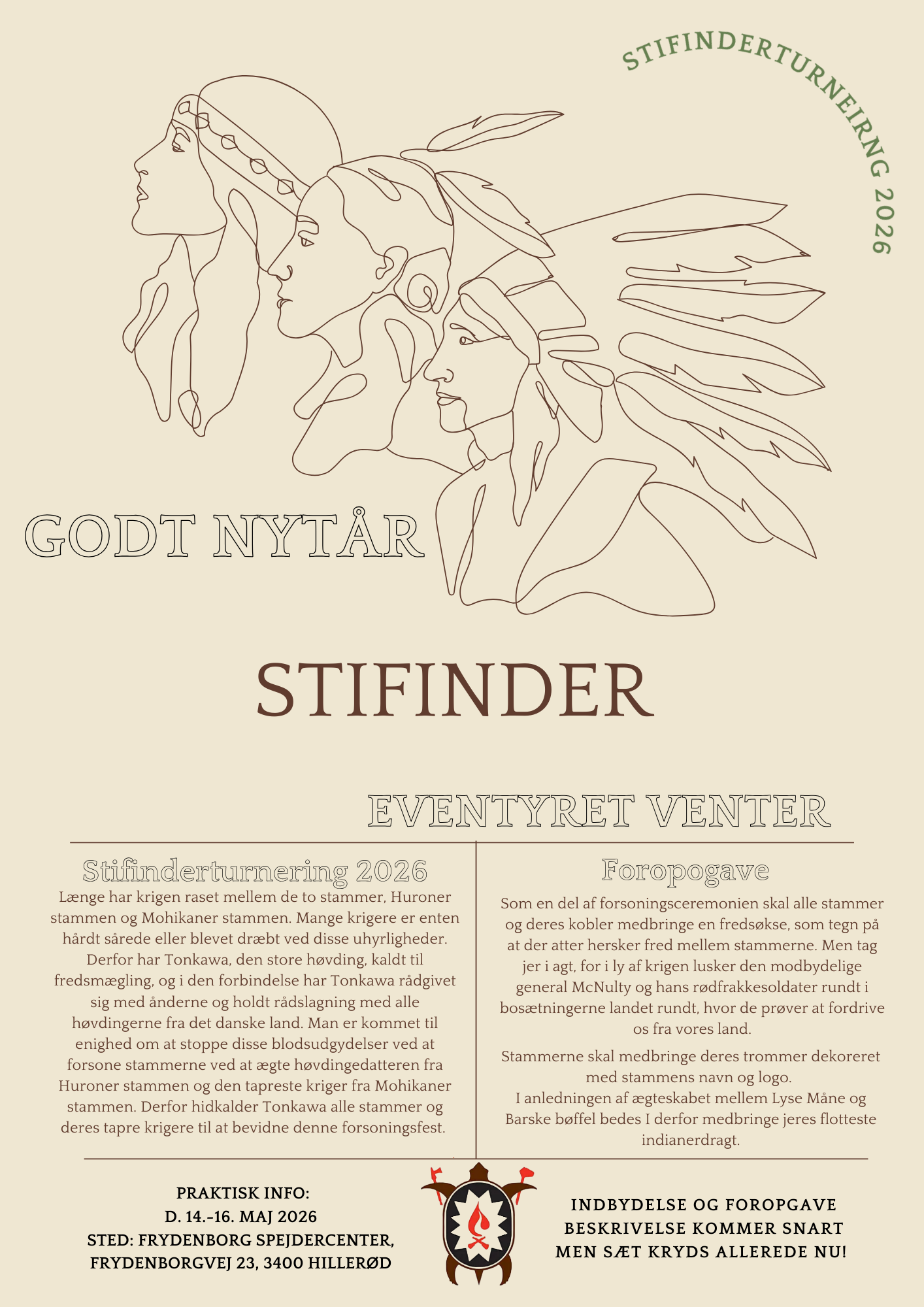Vi er hos Huroner stammen god igang med planlægningen af den kommende stifinderturnering, som kommer til at byde på masser af eventyr og leg for jeres mange tapre krigere. Mere om det vil komme, når månen atter er rund, og ånderne er med os. Men indtil da, og mens jorden stadig er frossen, så vi ikke kan øve vores færdigheder ud i at etablere bosætninger, må vi overvintre i vores tipier med bål og varme.