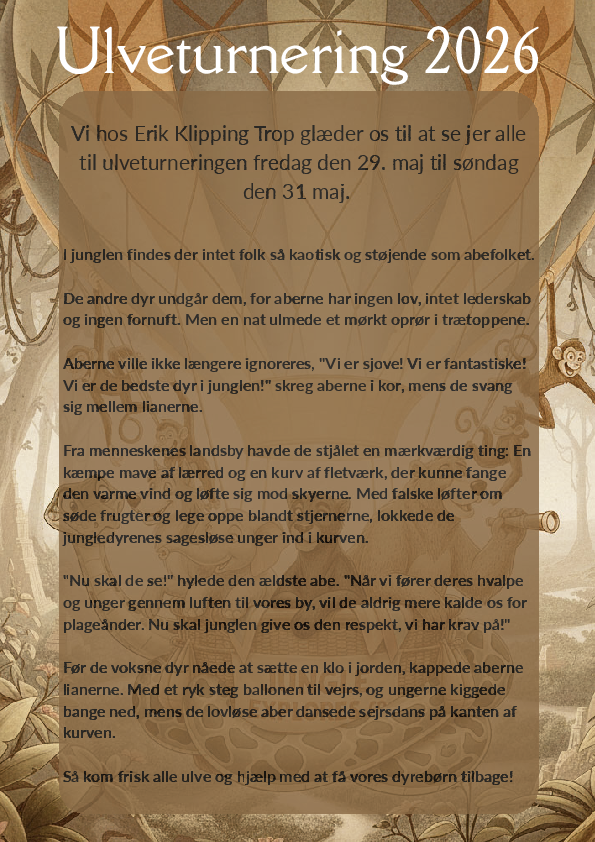 Vi hos Erik Klipping Trop glæder os til at se jer alle til ulveturneringen fredag den 29. maj til søndag den 31. maj.